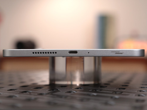 之所以说它听劝,是因为这一代在摄像头Deco位置取消了装饰件,机身背面几乎没有额外的视觉元素,非常简洁干净,除了摄像头就只剩下REDMI的logo。REDMI K Pad 2本次提供了三种配色——太空银、电光紫、深邃黑,依旧提供了上代的紫色配色,不过我们这一台是银色,算得上是百搭且不会出错的选择。细节层面,广受好评的双USB-C口设计这代得以保留,最高传输速度支持USB 3.2 Gen 1,同时支持视频输出功能。